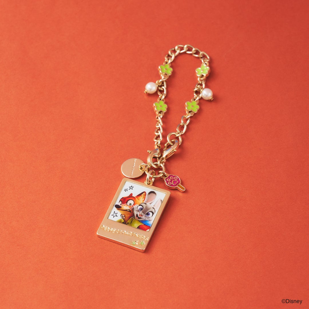 「ジュディ」、「ニック」が着用しているお洋服をイメージした配色と柄がデザイン。「ジュディ」が持っていた人参モチ―フのボールペンや警察バッジ、「ニック」が付けているサングラス、物語のワンシーンを連想させるアイスキャンディ―など、それぞれのキャラクターをイメージしたモチーフが施されたバッグチャーム。