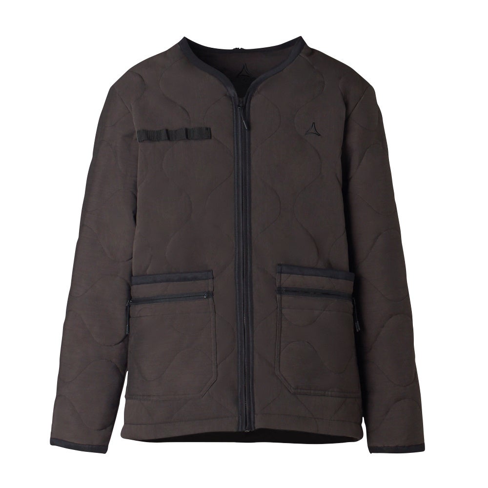 引裂きに強く耐熱性に優れている素材ダイナモナスにS字柄のキルトを施したルーズフィットジャケット。防風性も高くキャンプやタウンでもキルティング素材ですので暖かく過ごせます。右胸にキャンプで活躍するウェービングテープ、前両側にジップポケット付きのパッチポケットがついています。両脇部分にはドローコードがついており裾部分の調整が可能です。