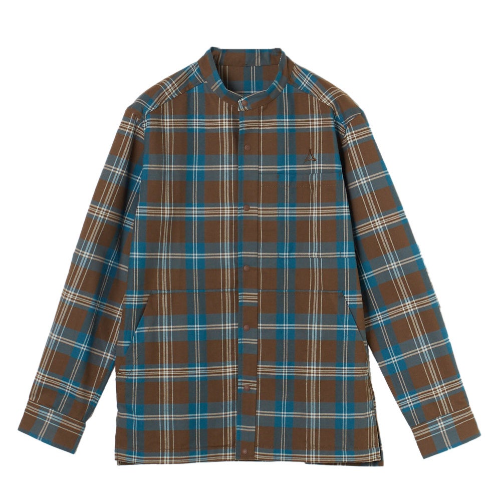 化学繊維ながら良質なウールフランネルのような風合いを持つサーモライト®を使用したスタンドカラーシャツ。軽量で保温性が高くストレッチ性もあるので着やすいのが特徴です。左胸には少し深めのスナップボタンがついたポケットが付き、両脇には大きめのポケットがついてます。チェック柄とソリッドの5色展開です。
