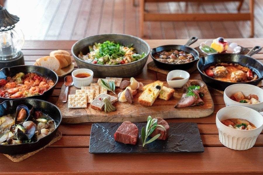 前菜から始まり、大分和牛のステーキや豊後鶏、奥豊後産豚のスペアリブなど食卓を彩るディナーコース。またキノコとサルシッシャのアヒージョやスパニッシュスープ、あつあつのトマト仕立てのリゾットなど、クリスマスシーズンを食事でも楽しむディナーコースをご用意しております。各お部屋のダイニングスペースでゆっくりとお召し上がりいただき、大切な人とゆっくりとご滞在をお楽しみいただけます。