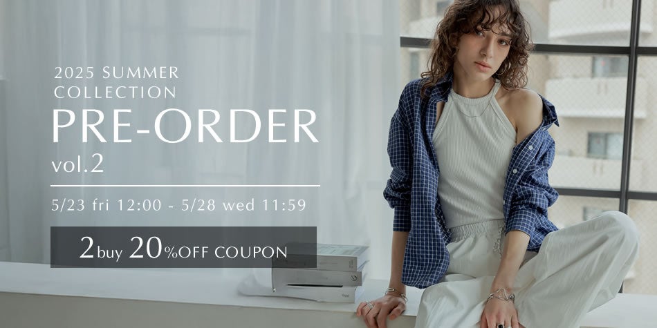 プレオーダー期間(5/23 12:00~5/28 11:59)は、対象アイテム2点以上お買い上げで20%OFFのクーポンをご利用いただけます。