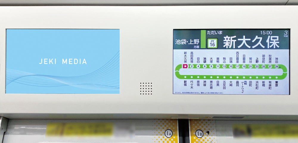 jekiは、JR東日本の主要駅構内と主要路線車両内で多種多様なデジタルサイネージを設置・運用しています。そのうち、車両内で展開する「トレインチャンネル」は、首都圏のJR主要10路線とゆりかもめの車両で、ニュース・天気予報等の情報番組を放映しており、高い注目率を獲得しています。