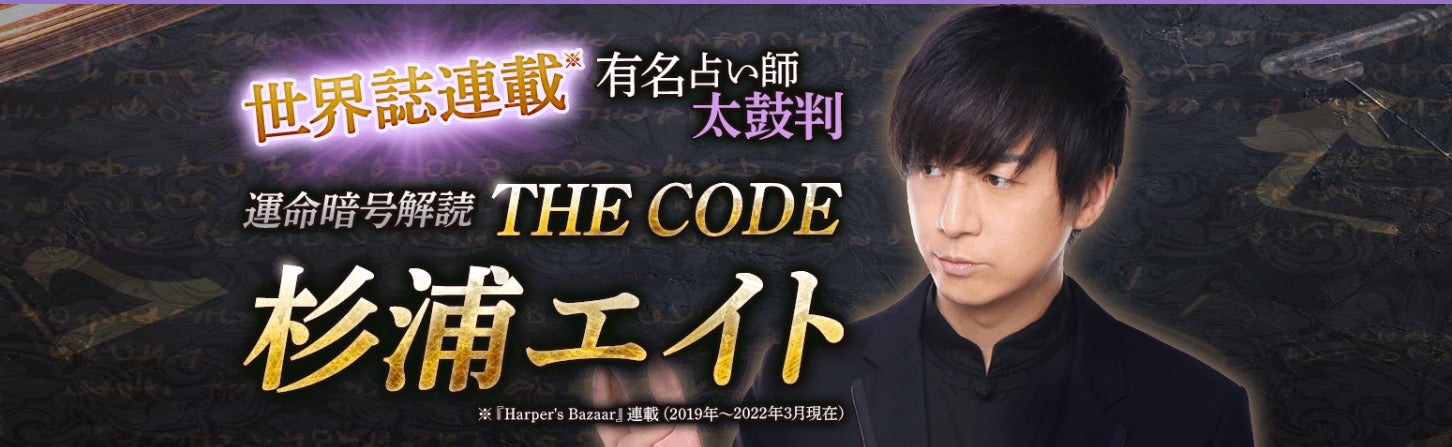 当たる占い|世界誌連載/有名占い師太鼓判【運命暗号解読◆THE CODE】杉浦エイトがうらなえる本格鑑定で提供開始!