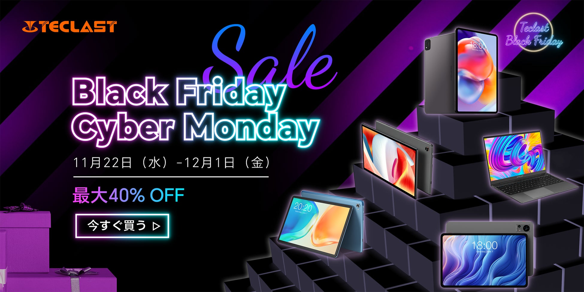 2023年Amazonバーゲンセールの「サイバーマンデー」いよいよ始まりました。12月1日まで、Teclastの人気タブレット&ノートパソコン最大40%オフ可能です。