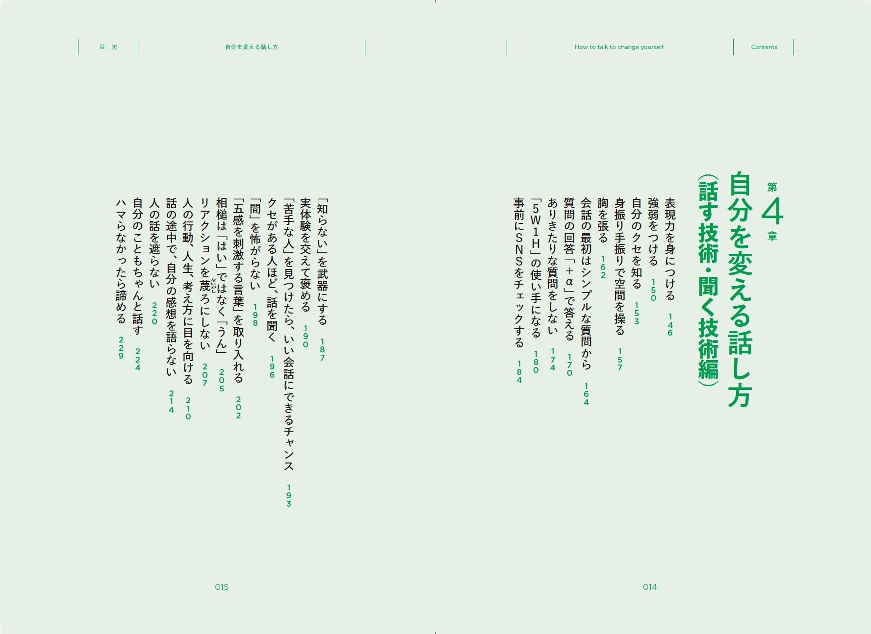 そして後半では、自分を変えるためのカギとなる「話し方」に焦点を当て、人と話をする際のマインドセットと、話す技術・聴く技術をお伝えしていきます。著者がMCとして10年間活動する中で培った、今日から実践できるノウハウがたっぷりと詰まっています。