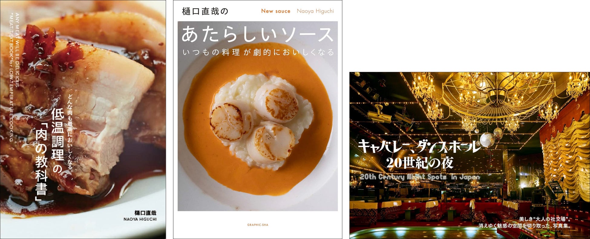 9月より電子書籍で配信されるのは『どんな肉も最高においしくなる。 低温調理の「肉の教科書」』『樋口直哉のあたらしいソース』『キャバレー、ダンスホール 20世紀の夜』になります。