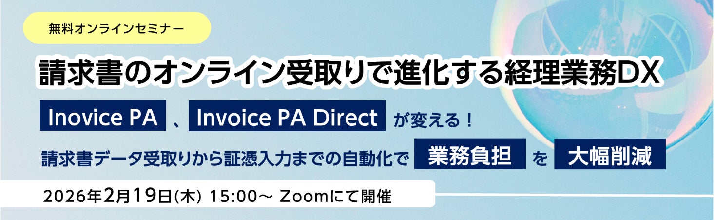 株式会社ニーズウェル(本社:東京都千代田区、代表取締役社長 松岡 元)は、2026年2月19日(木)15時より、無料オンラインセミナー「請求書のオンライン受取りで進化する経理業務DX ~「Invoice PA」、「Invoice PA Direct」が変える!請求書データ受取りから証憑入力までの自動化で請求書処理の業務負担を大幅削減~」を開催します。