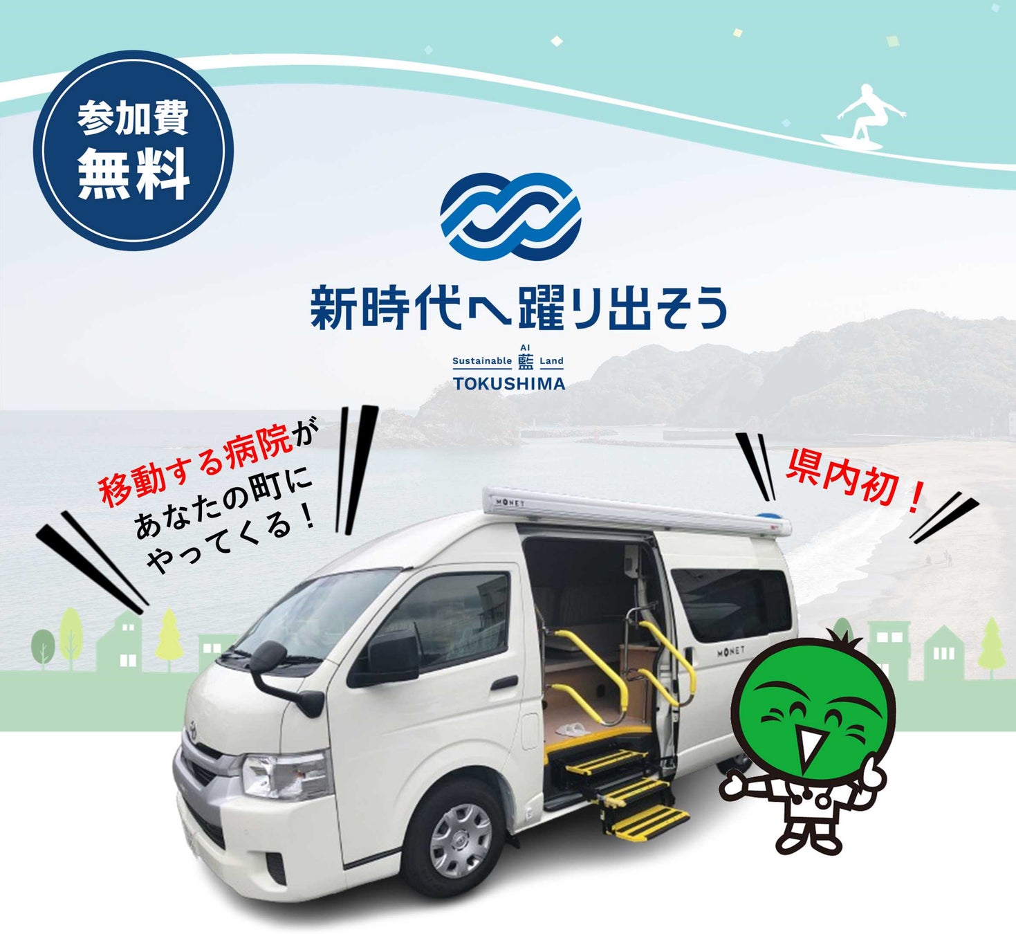 徳島県では、病院や診療所が遠く、交通手段も限られている地域のみなさまを支援するため、オンライン診療機能を持った専用車輛を活用した県内初となる「医療MaaS」の導入を検討しています。