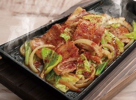 熱々の鉄板と香ばしい味噌の香りが食欲をかきたててくれる逸品。ピリ辛味噌が、黒豚バラとよく絡み、お酒だけでなく、ご飯にも合います。