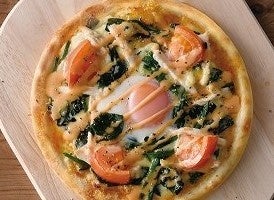■地どりとほうれん草のビスマルク⾵農場流ピザ 780 円(税込858 円)
