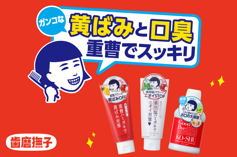 重曹※1パワーで黄ばみ※2をOFFし、薬用塩※3パワーで口臭予防!