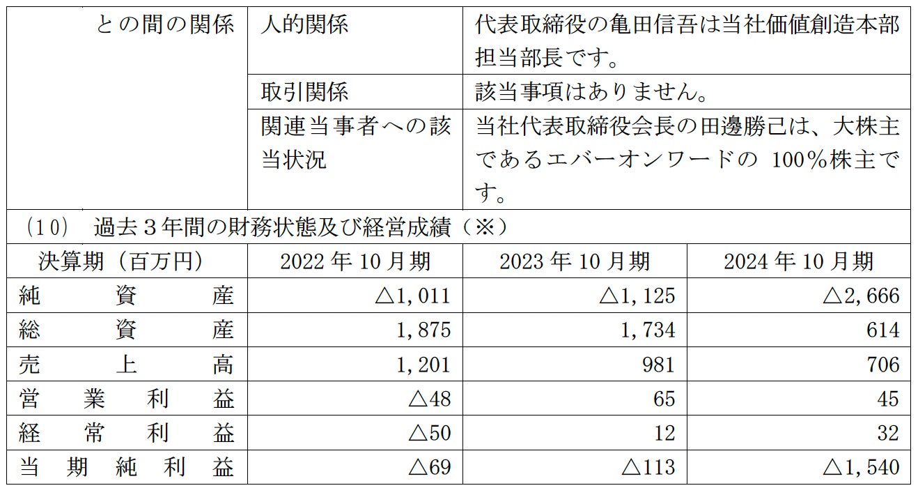 なお、当社代表取締役の田邊勝己は特別利害関係人にあたるため、本件の取締役会審議及び決議には参加しておりません。