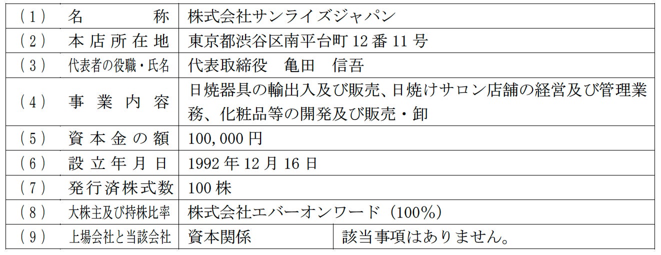2.異動する子会社(株式会社サンライズジャパン)の概要(2025年1月28日現在)