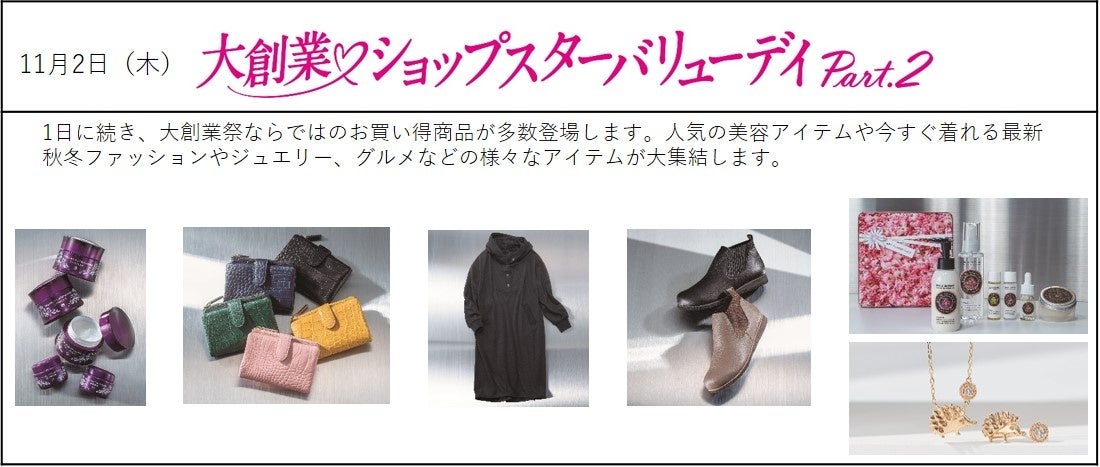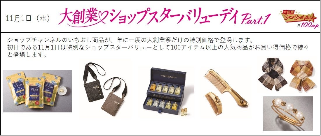 「大創業ショップスターバリューデイ」を放送します。100アイテム以上を紹介する11月1日を皮切りに、11月3日は