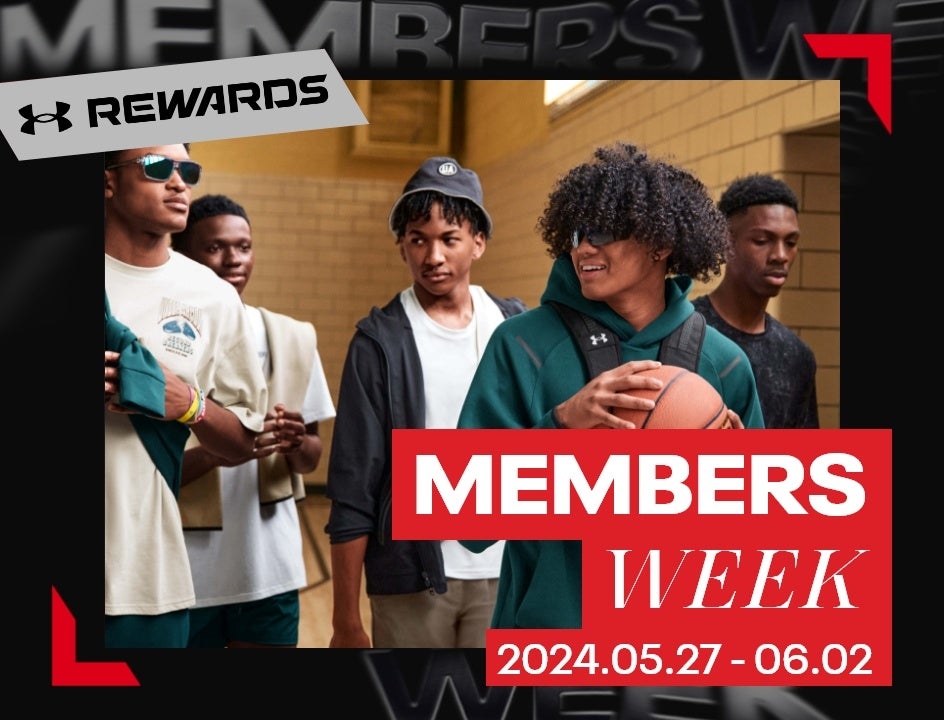 第一弾となるUAリワード メンバーウィークを5月27日(月)~ 6月2日(日)の7日間、開催します。期間中は一部のアイテムがメンバー限定価格で購入いただけるほか、ポイントを使った抽選に参加いただけます。