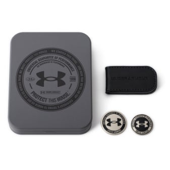 カラーとサイズの異なる2種類のゴルフマーカーは、上質な質感のスチール製。