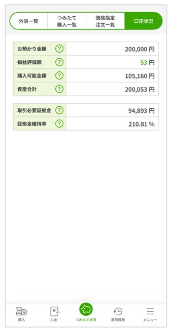 「つみたて状況」では、保有外貨の数量や購入残高(円換算)を一覧で確認できるようになりました。