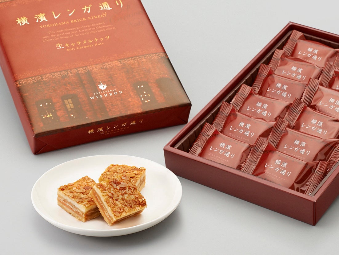 香ばしくローストしたアーモンドに自家製生キャラメルを絡め、特製のクッキー生地でサンドし、じっくり焼き上げました。パティシエが心を込めて銅鍋で炊き上げた自家製生キャラメルは「素材」「製法」「火加減」がおいしさの秘訣です。