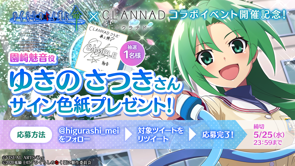 株式会社ディ・テクノ(本社:東京都中央区 代表取締役社長:市原 高明)は、スマートフォンゲーム『ひぐらしのなく頃に 命』にて、2022年5月18日(水)より「CLANNAD」とのコラボ限定カード第2弾の提供を開始しました。