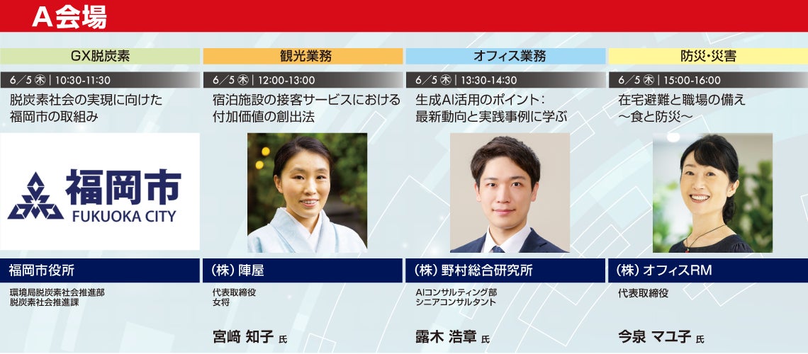 本展示会では、「DX」「防災・災害対策」「自治体の課題解決」「GX脱炭素推進」「観光業務支援」といったテーマに沿ったセミナーを開催します。