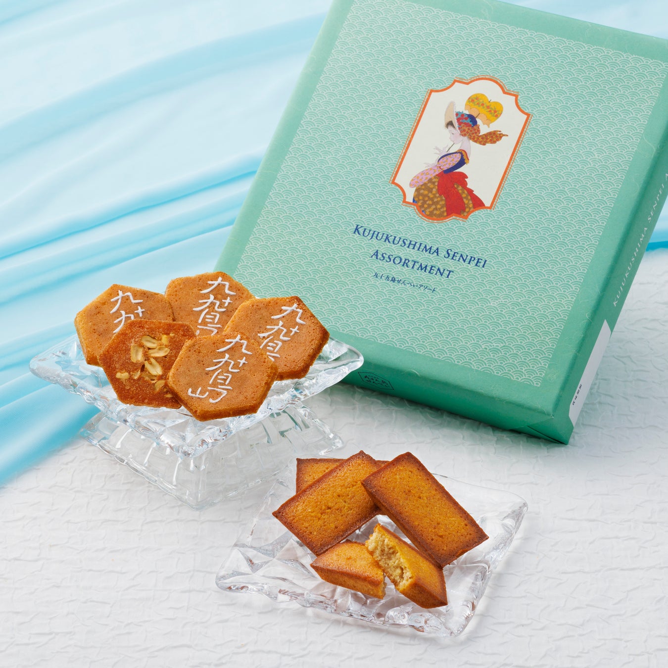 1951年のブランド誕生以来、長崎銘菓として愛され続ける「九十九島せんぺい」と、その伝統製法から生み出された「九十九島せんぺいフィナンシェ」を食べ比べて、それぞれの味わいをご堪能くださいませ。長崎土産としてはもちろん、季節の贈り物にもおすすめの一品です。