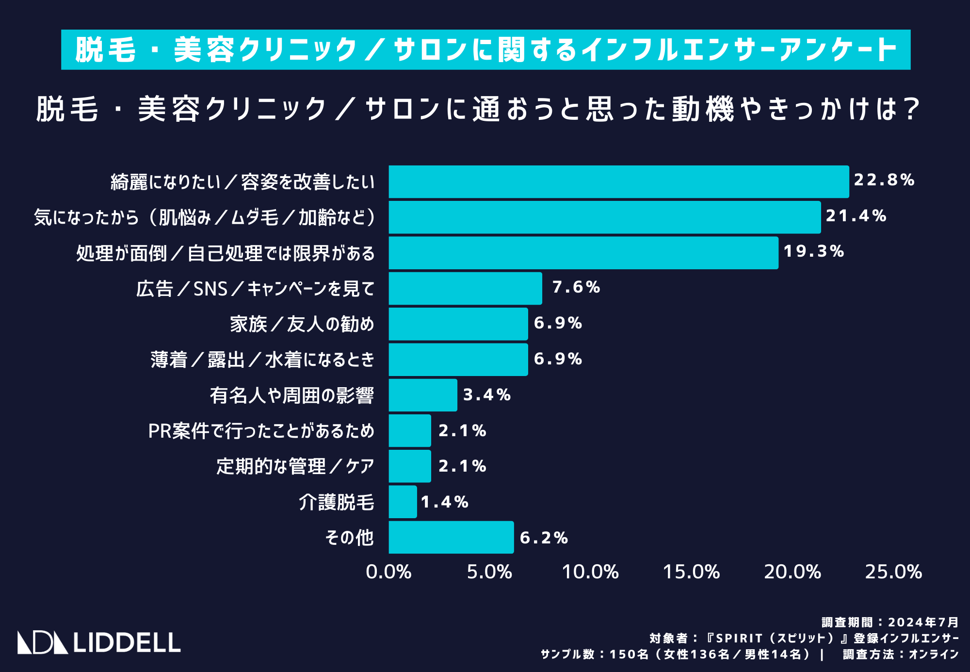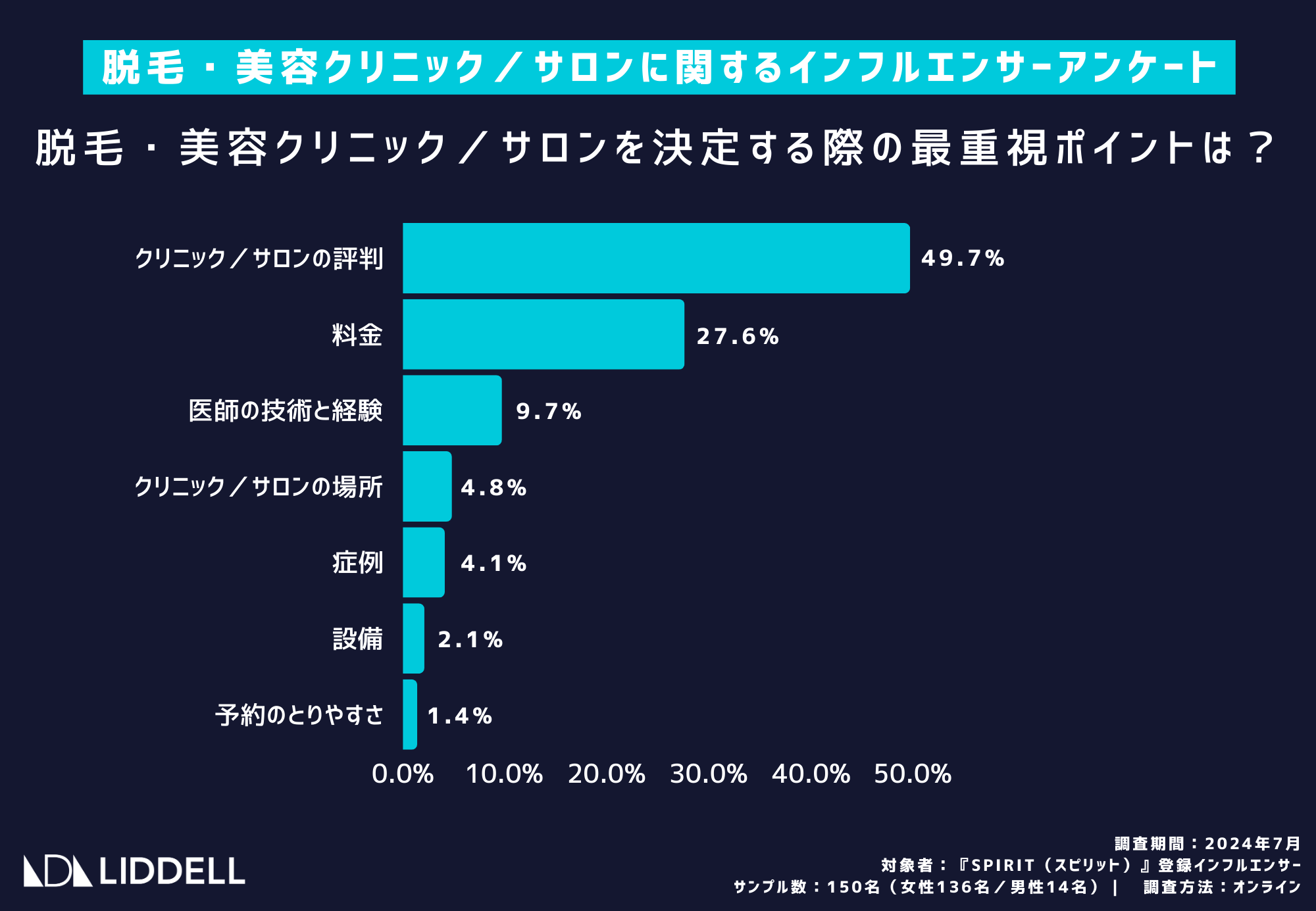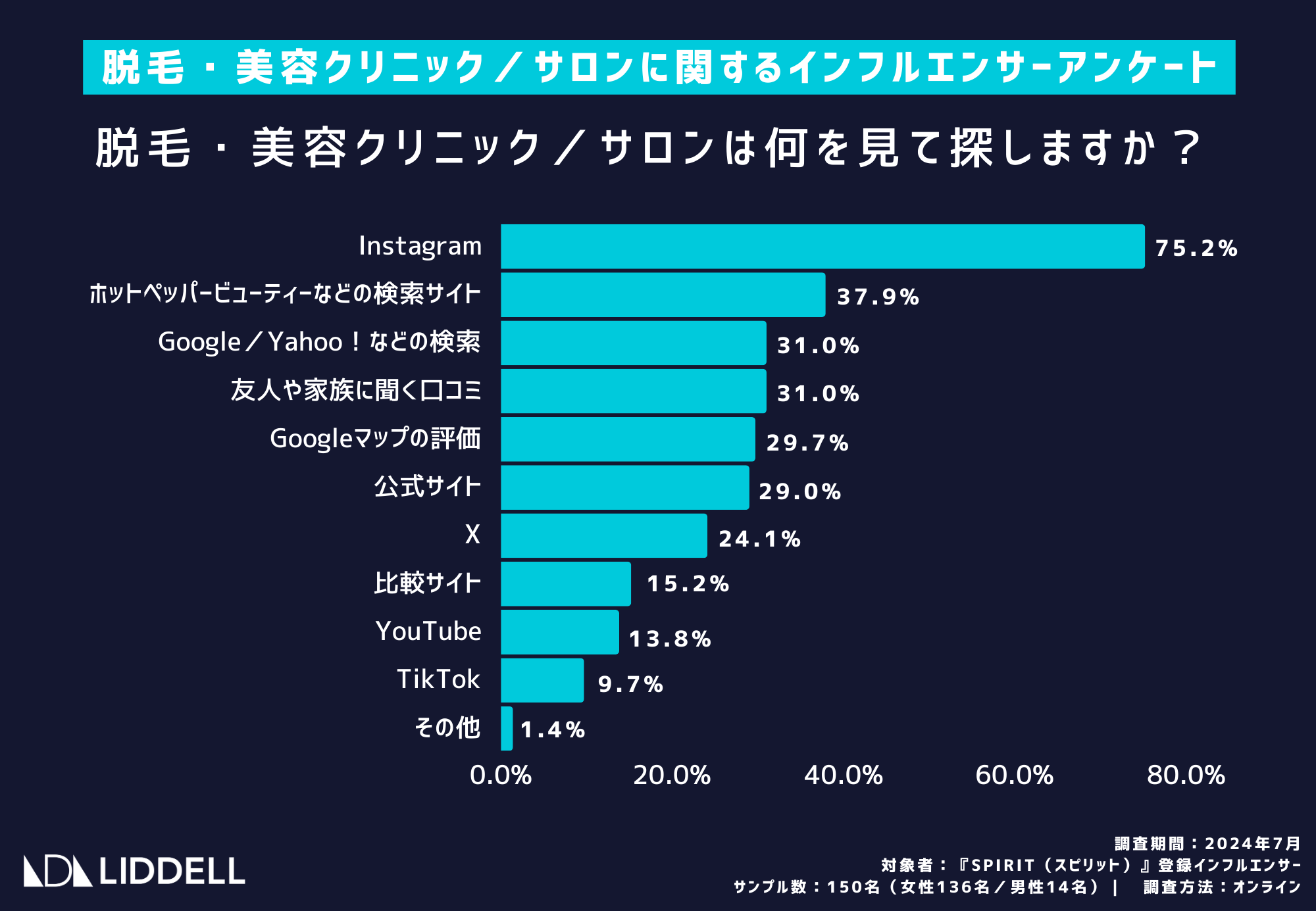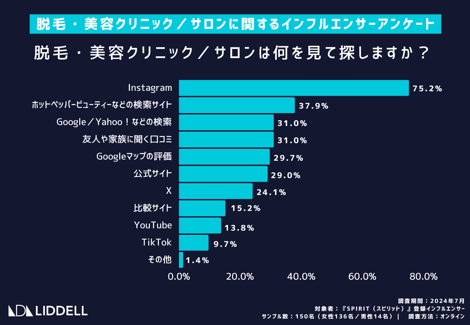 対象者:『SPIRIT(スピリット)』登録インフルエンサー:女性136名/男性14名