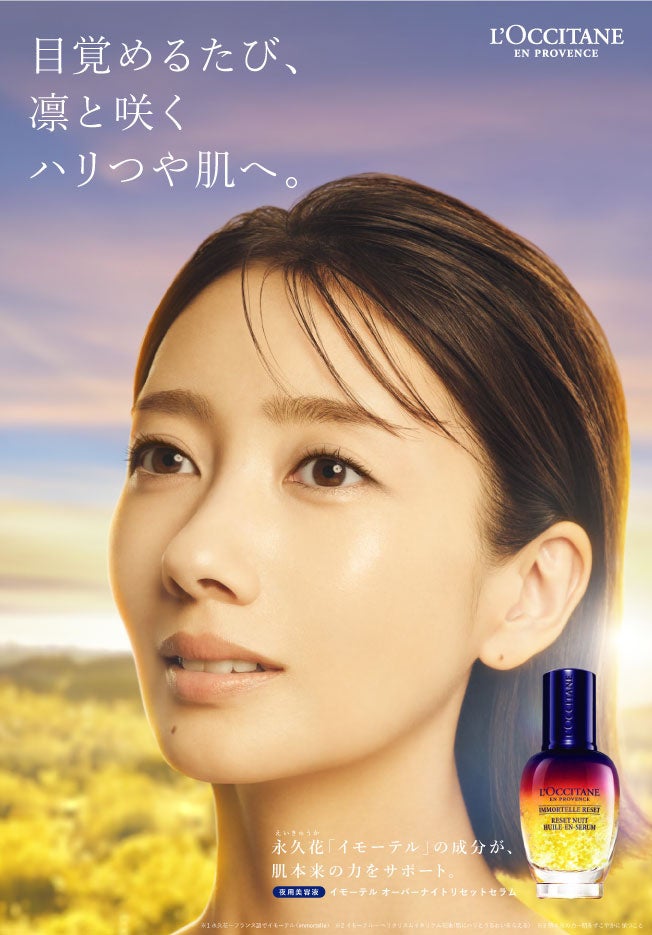 「ロクシタン」のブランドアンバサダーに波瑠さんが就任。目覚めるたび、凛と咲くハリツヤ肌へイモーテル オーバーナイトリセットセラム新CM「美しくなる力」篇