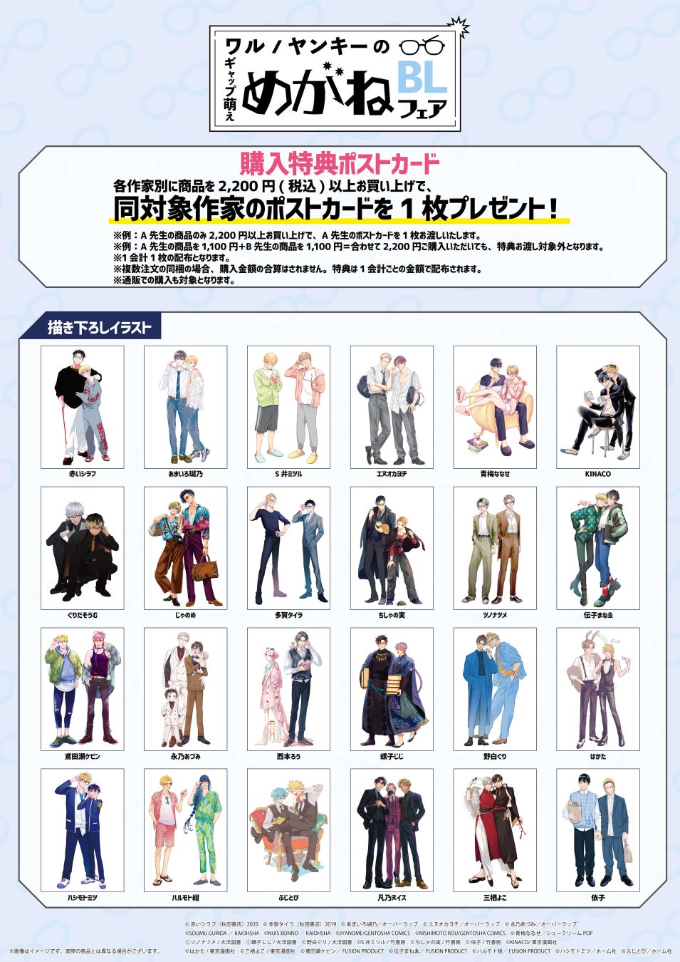 ■出版社10社×人気BL作家24名が集結「ワル/ヤンキーのギャップ萌えめがねBLフェア」