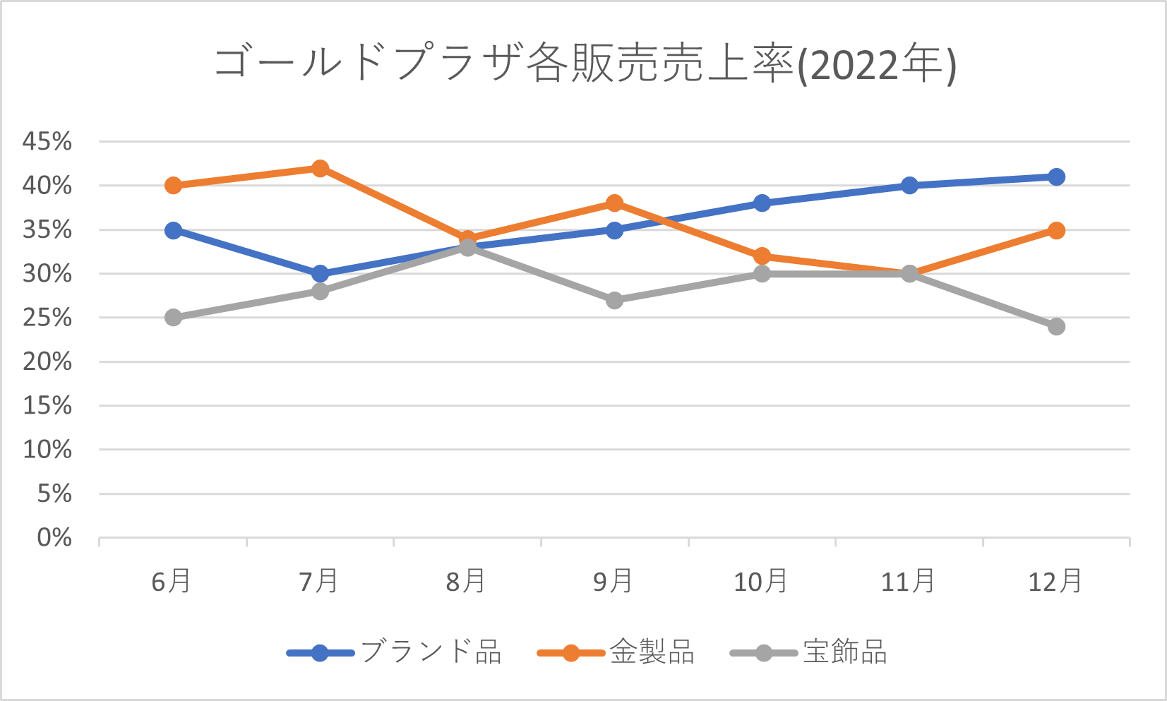 ゴールドプラザでは毎年、年の瀬に近づくにつれブランド品のお持ち込みが増えている中、今年は円安傾向や11月の規制緩和による観光客の増大により中古のブランド品を購入される方々が増えてまいりました。現在、ゴールドプラザでは自社ECをメインに店頭販売は行っておりませんが、中古市場オークションでは海外からの参加者や当社の通販サイトをご覧になられた観光客からのお問い合わせが販売に繋がるなど世界情勢の変化が中古ブランド品に影響を与えております。特にバッグやお財布などの売り上げが伸びており、ご自身へのご褒美やクリスマスに向けたプレゼント、観光客への販売に向けた新規オープンによるBtoBが売り上げ要因となっております。