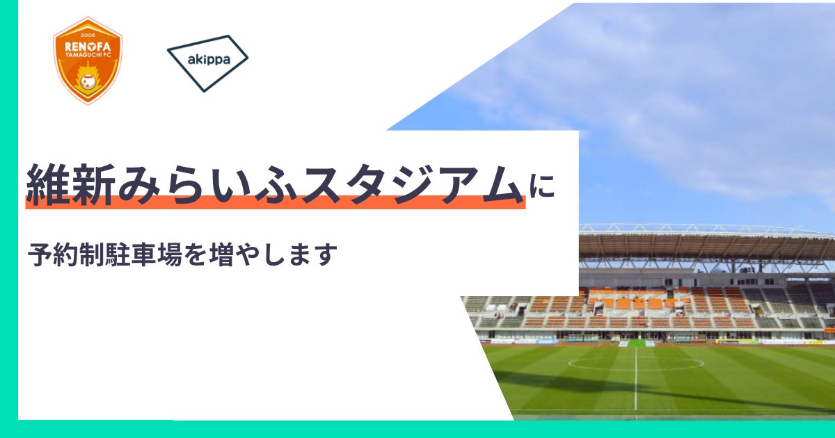 駐車場予約アプリ「akippa(以下、アキッパ)」を運営するakippa株式会社(代表取締役社長 CEO:金谷元気)はサッカーJ2リーグに所属する「レノファ山口FC」を運営する株式会社レノファ山口(代表取締役社長:渡部 博文)と連携し、維新みらいふスタジアム周辺や県内の交通混雑解消に取り組みます。