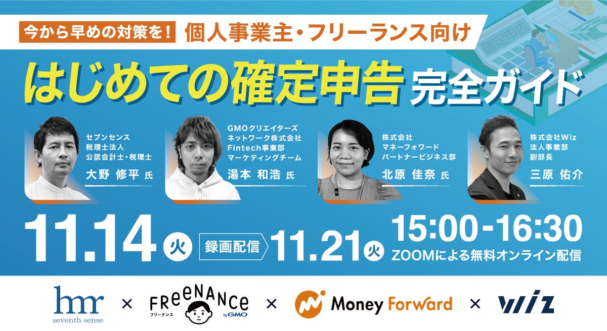 《11/14(火) 個人事業主・フリーランス向け》今から早めの対策を!【はじめての確定申告】完全ガイド