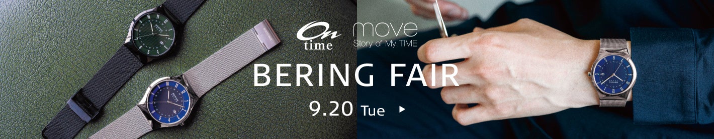 開催内容:オンタイム・ムーヴ別注ウォッチを中心に、BERINGの2022AW最新コレクションから定番人気のアイテムまで幅広く展開します。