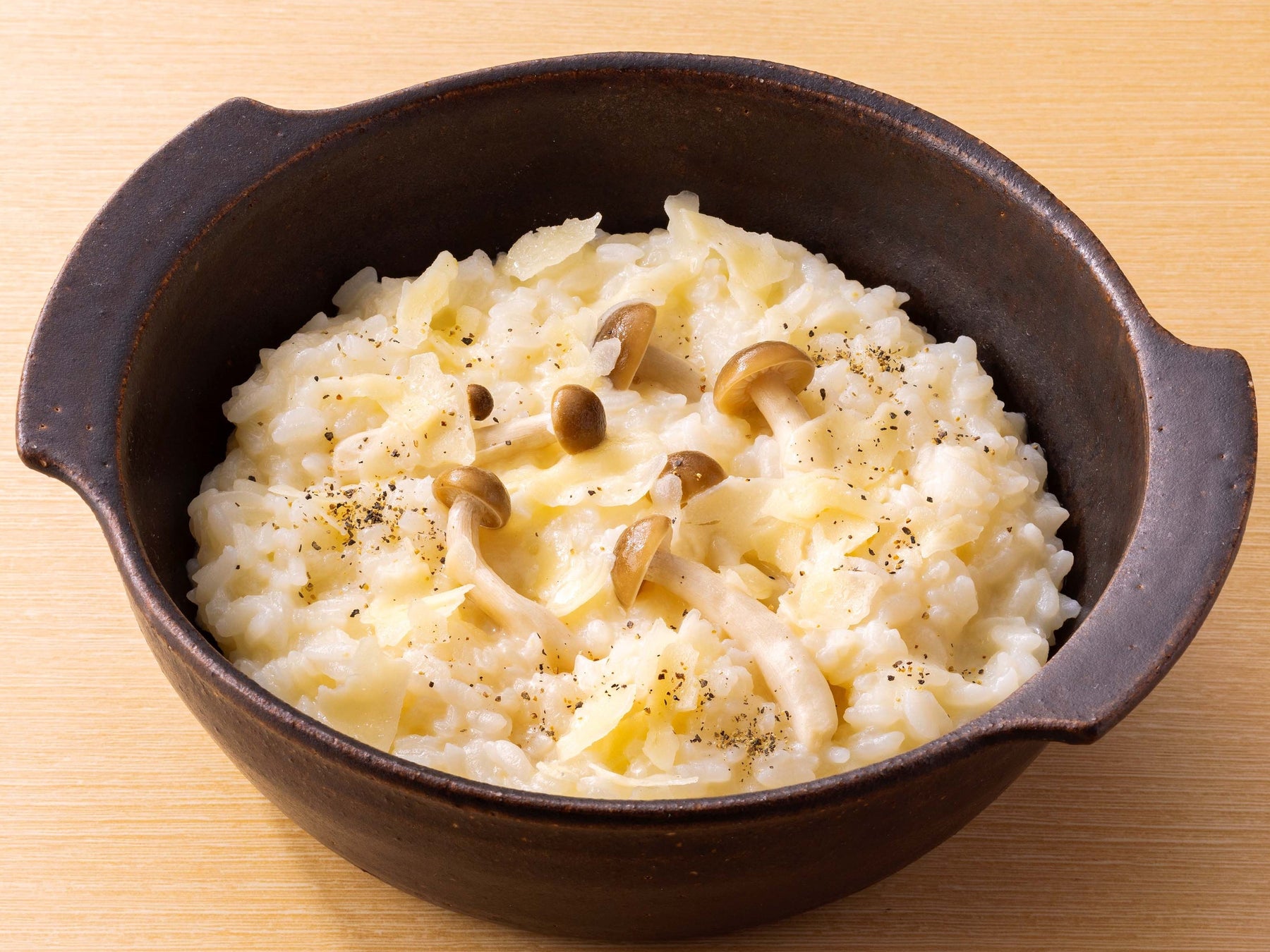 パルメザンチーズ+ごはん。帆立豆乳だしとパルメザンチーズがよく合う、〆にぴったりの一皿です。