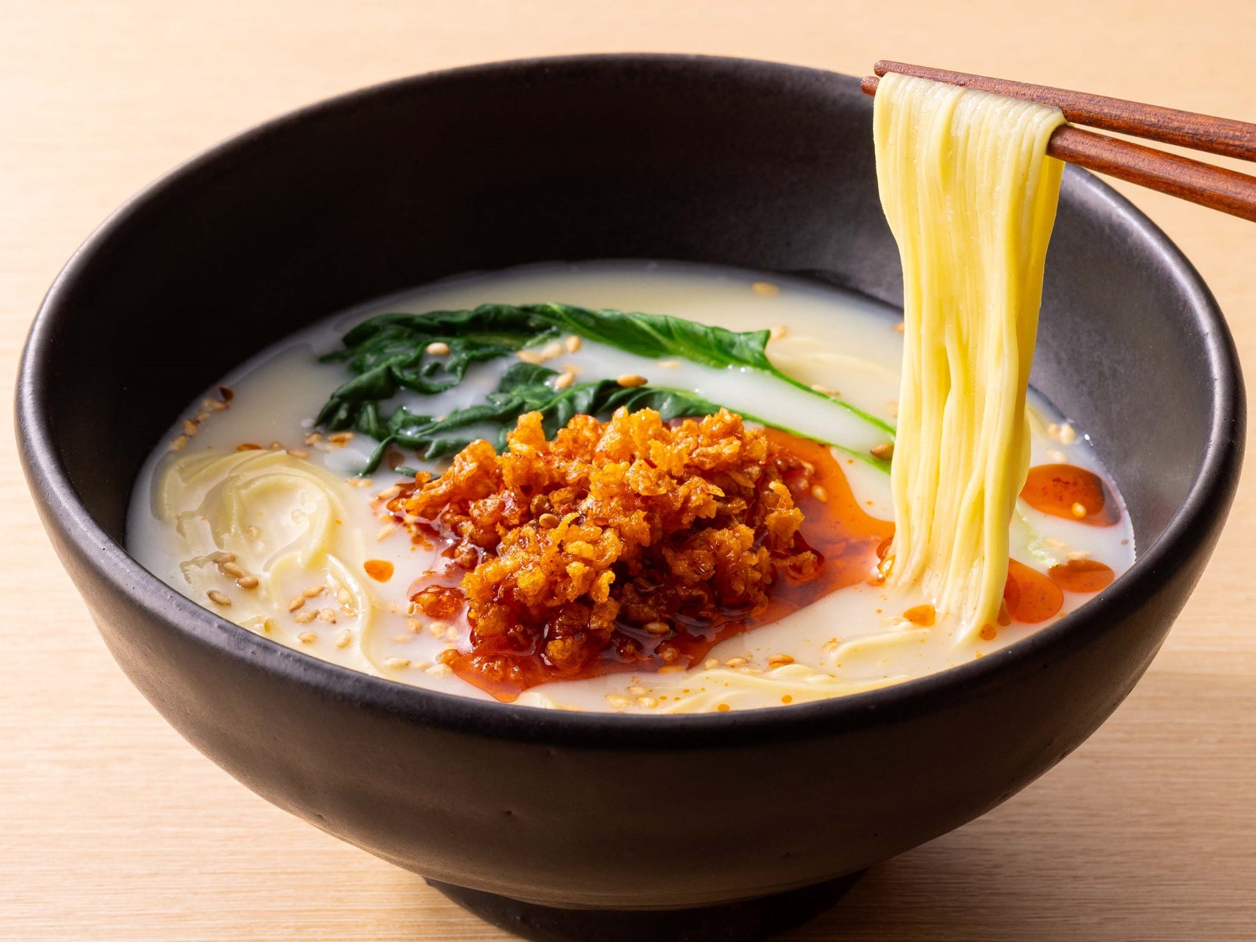 豚骨・鶏がらエキスに魚醤を合わせた、濃厚でまろやかな風味の豚骨だしに仕上げました。程よい甘みで脂身もしつこくなく、モチッとした食感が特徴の“霧島黒豚”との相性はもちろん、冬場の野菜を一層美味しくお召し上がりいただけます。紅生姜、高菜、焦がしニンニク醬油だれも同じく継続いたします。