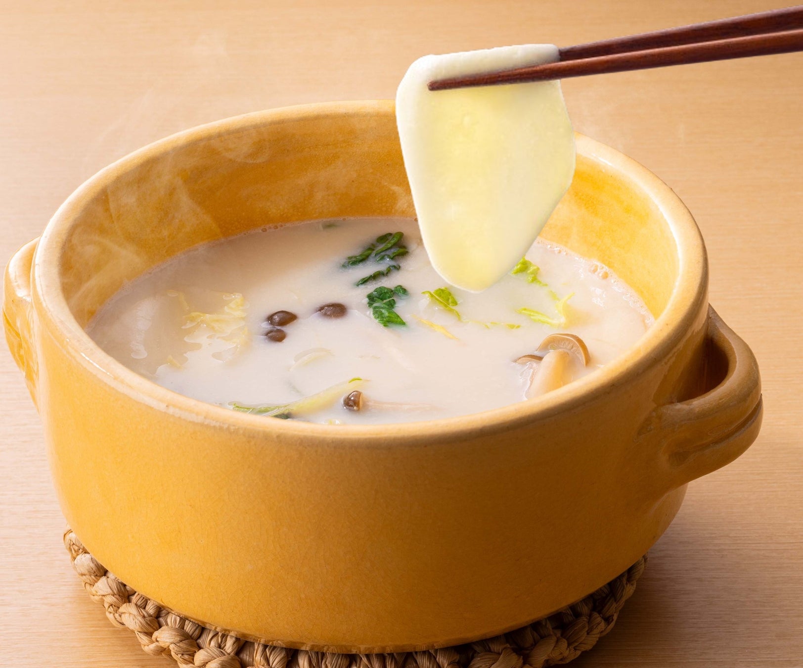 薄く削ったチーズが帆立豆乳だしにコクと風味をプラス!+110円(税込)