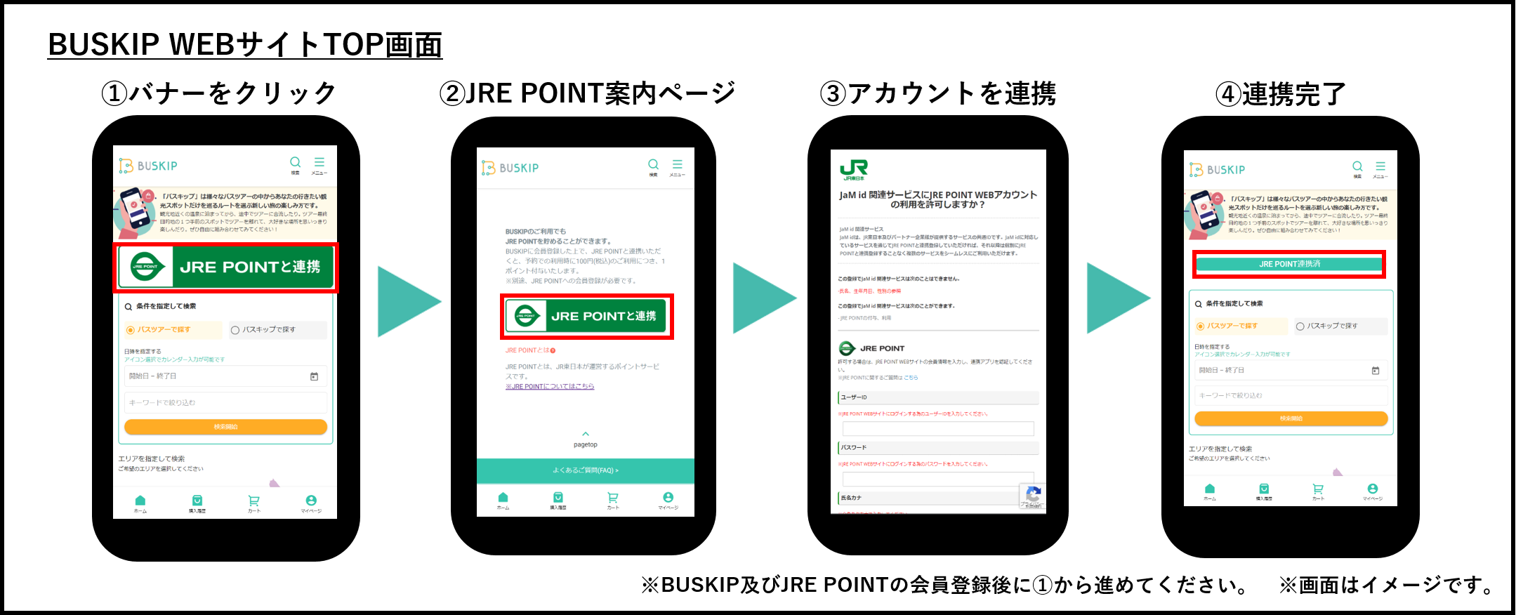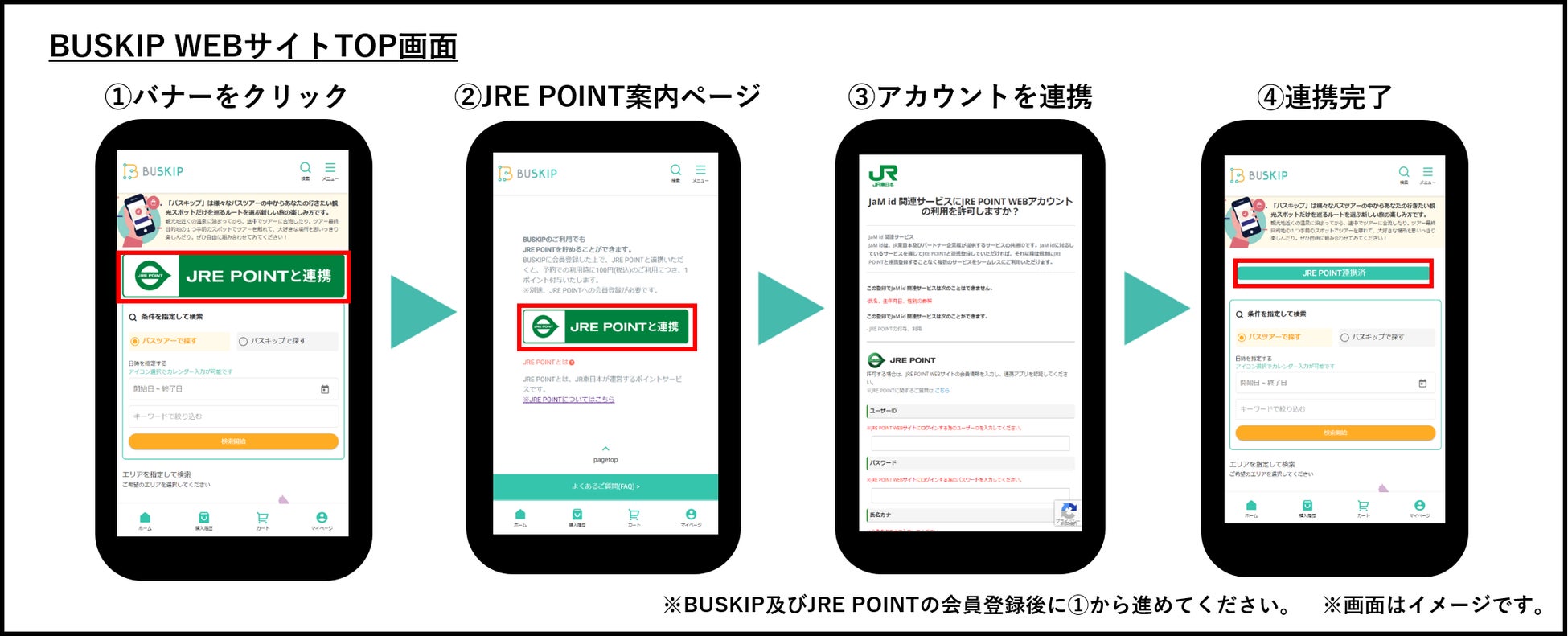 ※BUSKIP会員登録の後、JRE POINT(要会員登録)と連携が必要となります。
