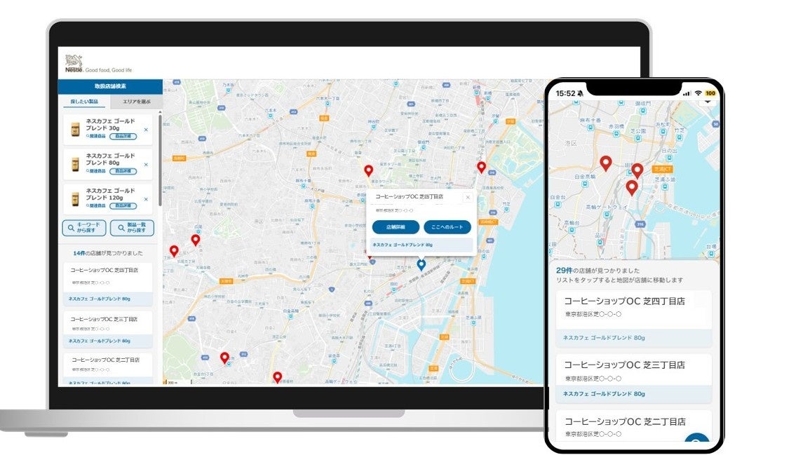 Mapion Biz「買えるお店マップ」、ネスレ日本の店舗検索に導入