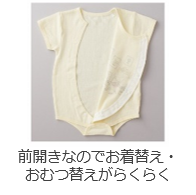 前開きで股下まで全開するので、お着替えやおむつ替えも簡単に行えます。