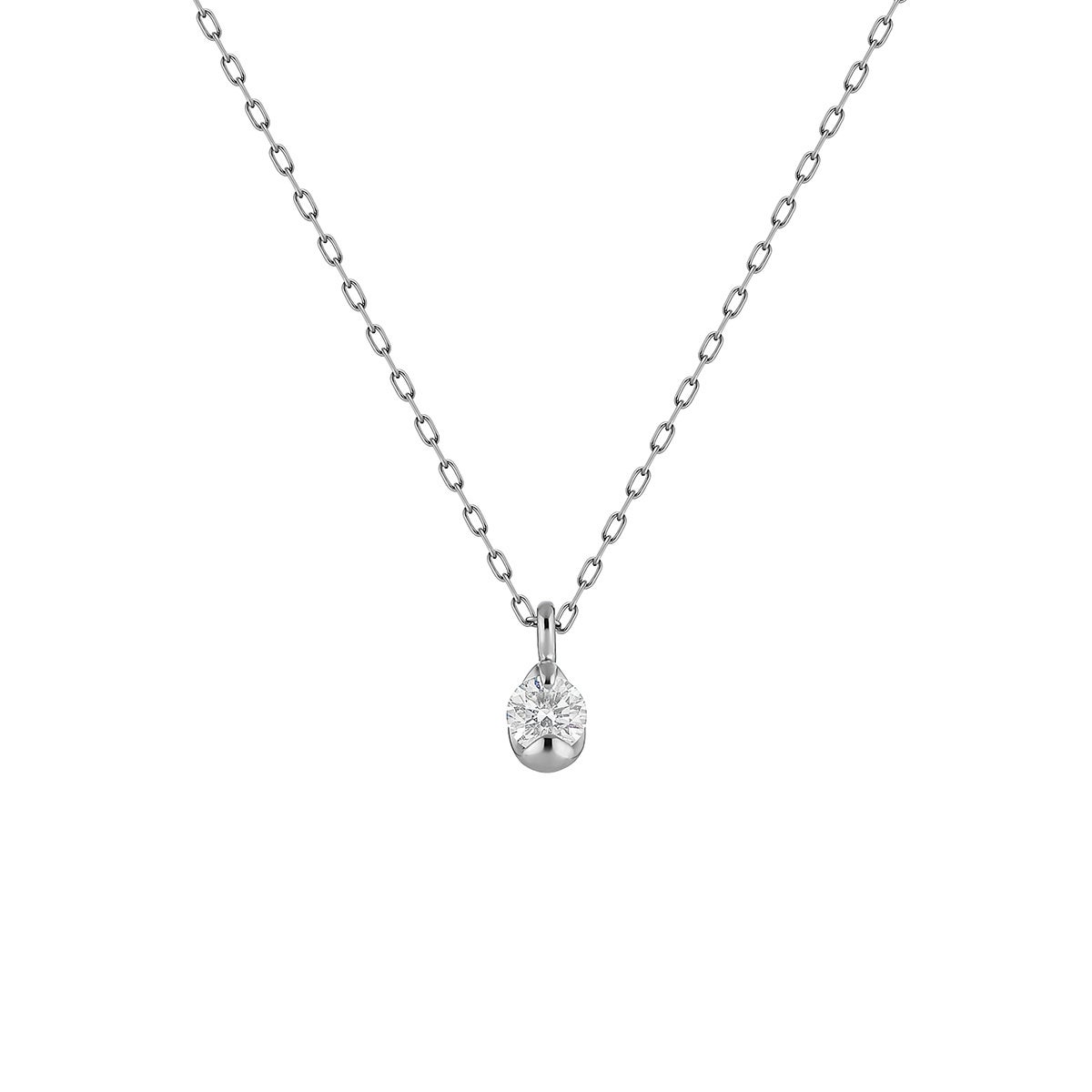しずく型の軽やかなフォルムが特徴の、自社アトリエが開発したオリジナルの石座を採用。石座をすっきりとした構造にすることで光を取り込みやすく、石本来の輝きをより美しく引き立てます。4℃らしい繊細なデザインとともに、透明感あふれる輝きを楽しめるネックレスに仕上げました。しずくモチーフには恵みをもたらすという意味が込められており、大切な方へのギフトにもおすすめです。