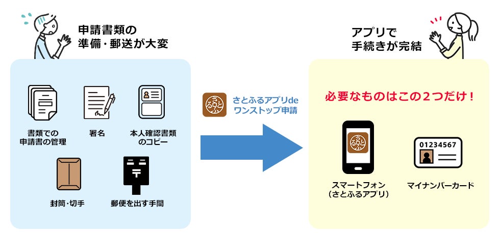 ふるさと納税ポータルサイト「さとふる」(https://www.satofull.jp/)を運営する株式会社さとふる(本社:東京都中央区、代表取締役社長:藤井 宏明)は、ワンストップ特例制度における申請がスマートフォン上で可能になる「さとふるアプリdeワンストップ申請」のサービスを今秋(予定)より開始します。なお、マイナンバー入力や電子署名を含め、ワンストップ特例制度の申請がオンラインで完結するサービスの提供は、民間のふるさと納税ポータルサイトで初めて(※1)となります。