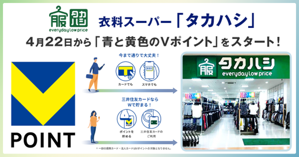 4月22日から衣料スーパー「タカハシ」で「青と黄色のVポイント」を開始