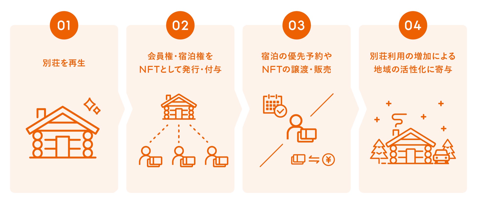 こうした背景の中、LIFULL Financialでは、再生不動産を小口で購入可能な別荘会員権および宿泊権NFTとして発行することで、利用者の方に1日単位でセカンドハウス保有体験を提供し、地域貢献の機会を創出します。