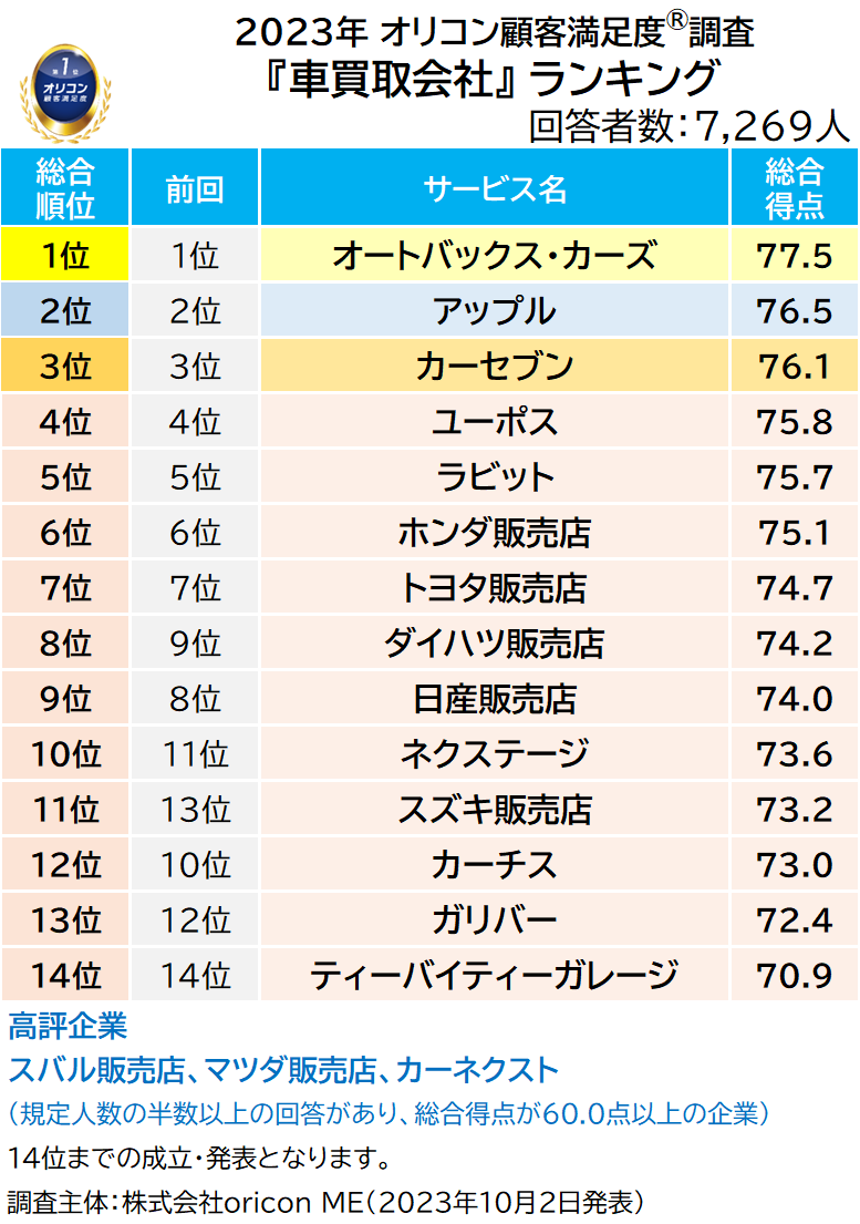 ・中古車専門販売店 https://life.oricon.co.jp/rank-used-car-sell/specialty/