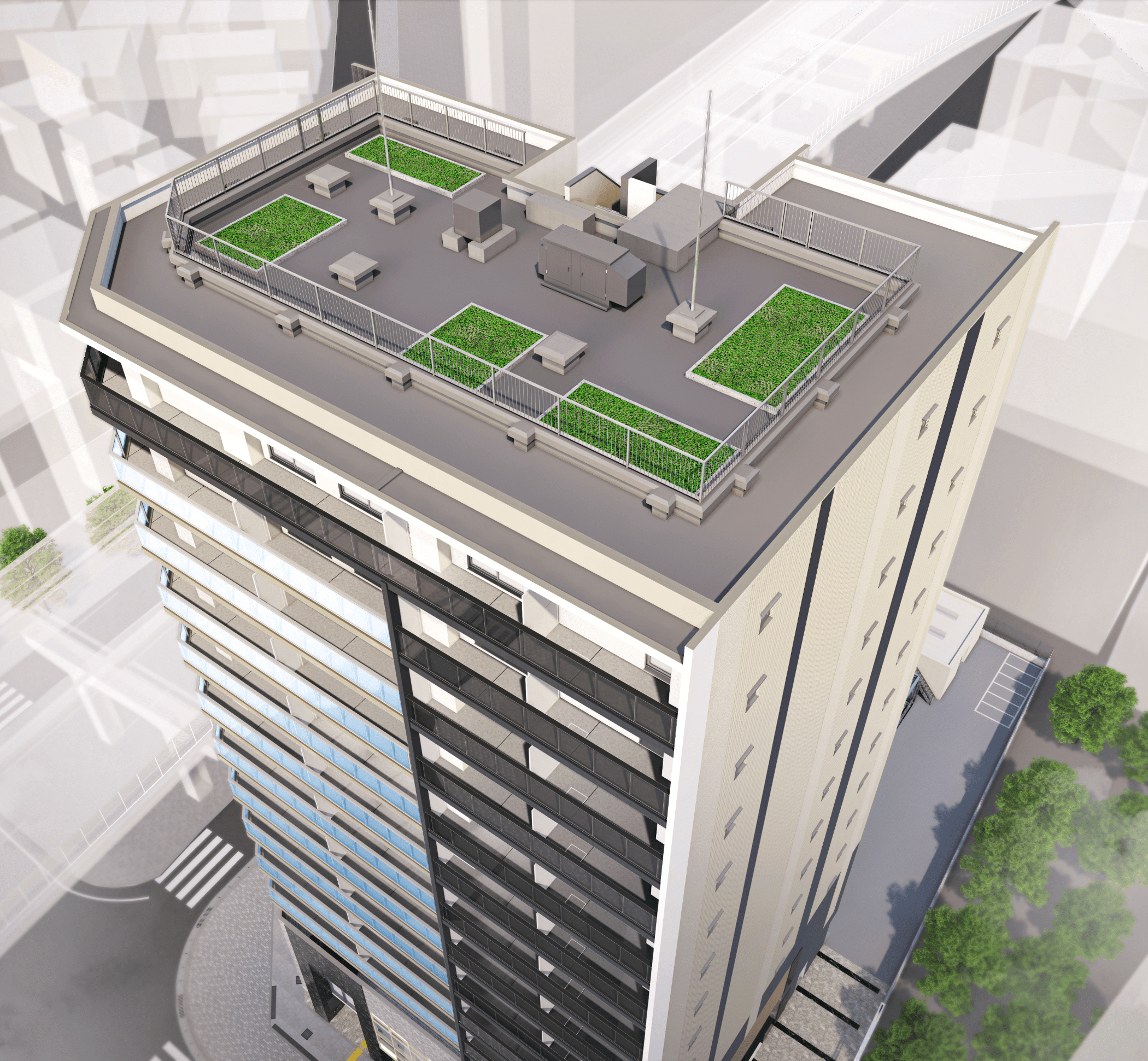 上記のシステムを採用するだけでなく、屋上緑化なども施すことで、省エネルギー・高断熱の環境性能の高い建築物として評価を受けました。