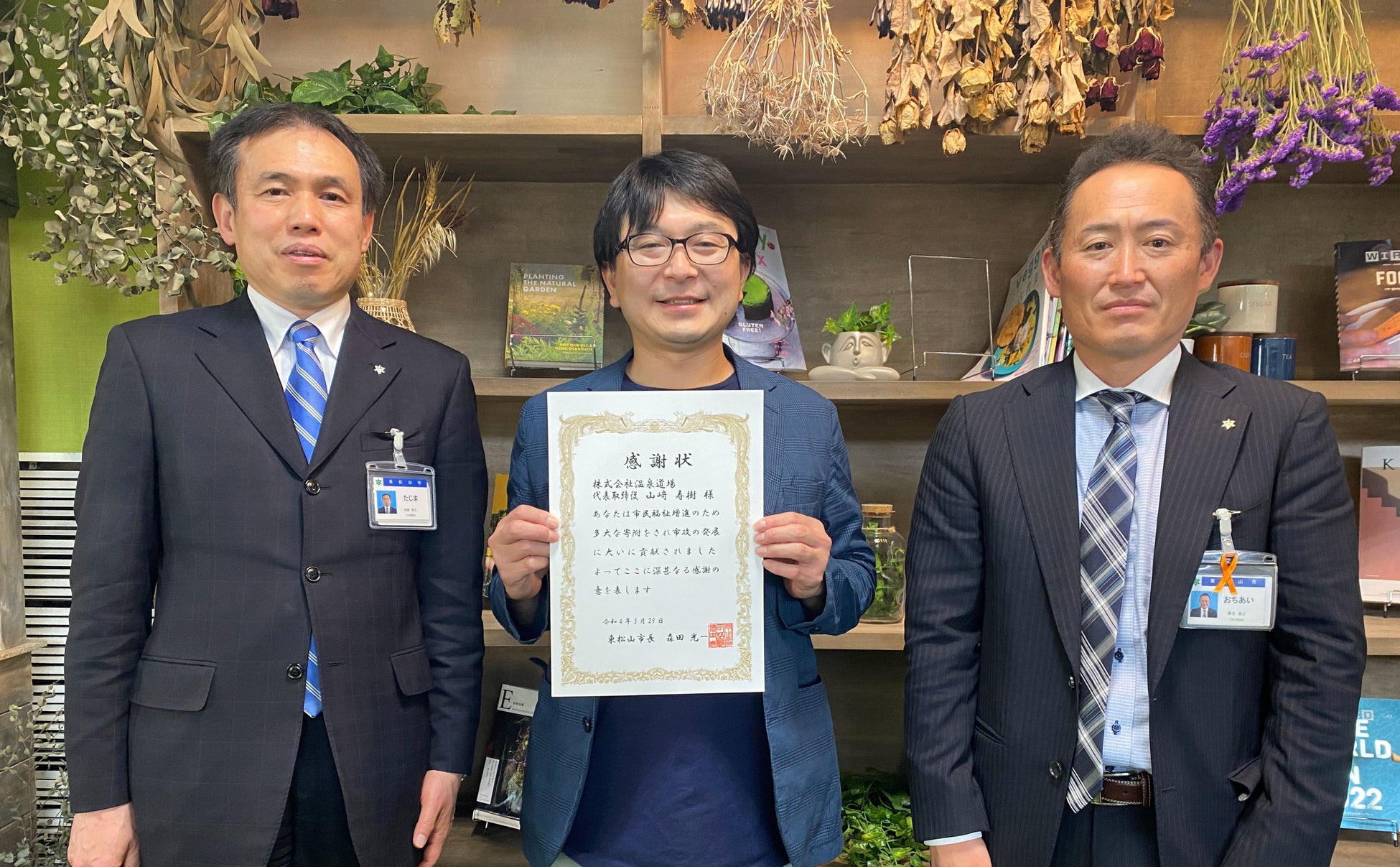 株式会社温泉道場(埼玉県比企郡ときがわ町、代表取締役 山崎寿樹)は、東松山市より企業版ふるさと納税の実施について感謝状をいただきました。
