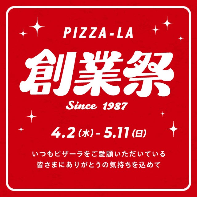 株式会社フォーシーズ(本社:東京都港区南青山 代表取締役会長兼CEO:淺野幸子)が展開する宅配ピザ「PIZZA-LA」は、 2025年4月2日(水)~5月11日(日)の期間「ピザーラ創業祭 プレゼントキャンペーン」を実施いたします。
