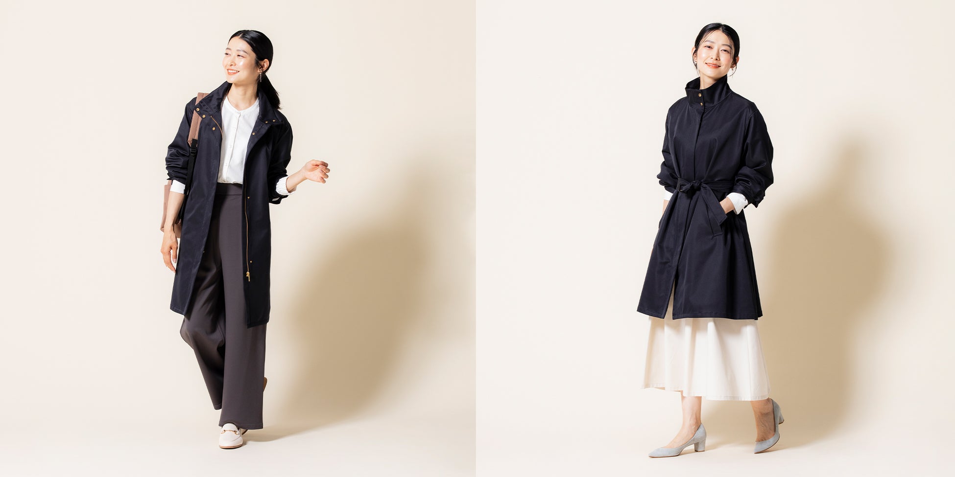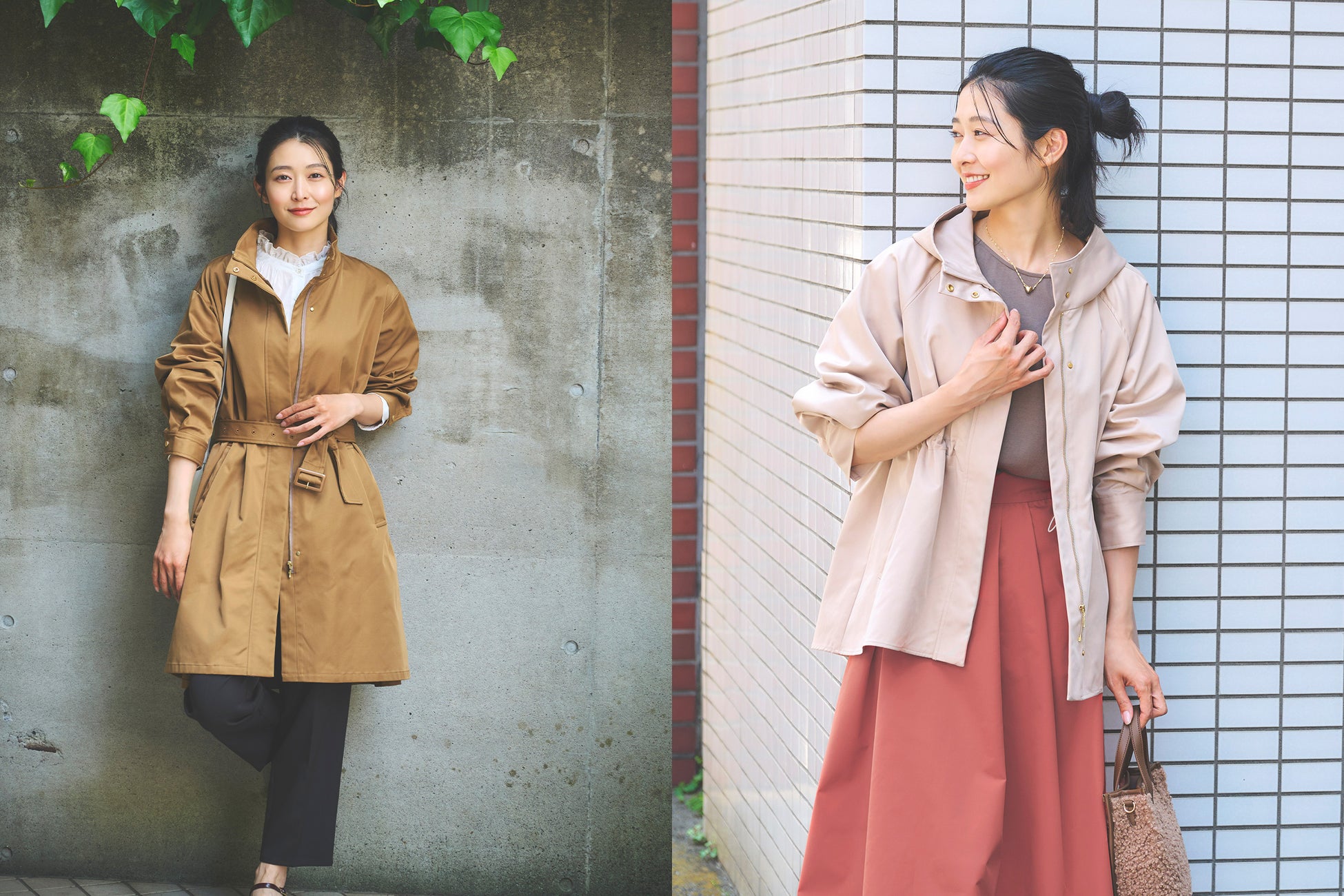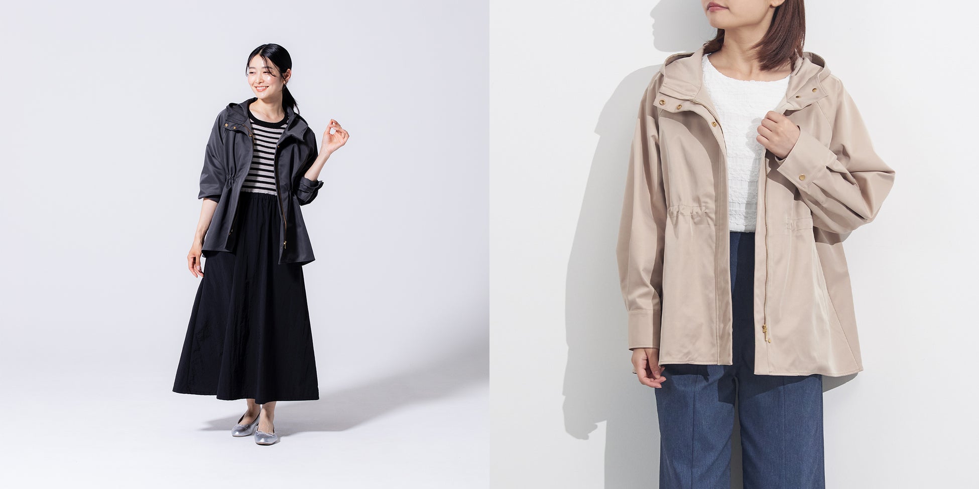 天候に左右されやすい秋に大活躍する、着回し力抜群の「【すごナノ撥水】ウエストスピンドルフードジャケット」「【すごナノ撥水】ベルテッドスタンドコート」が9月13日(金)より発売開始。