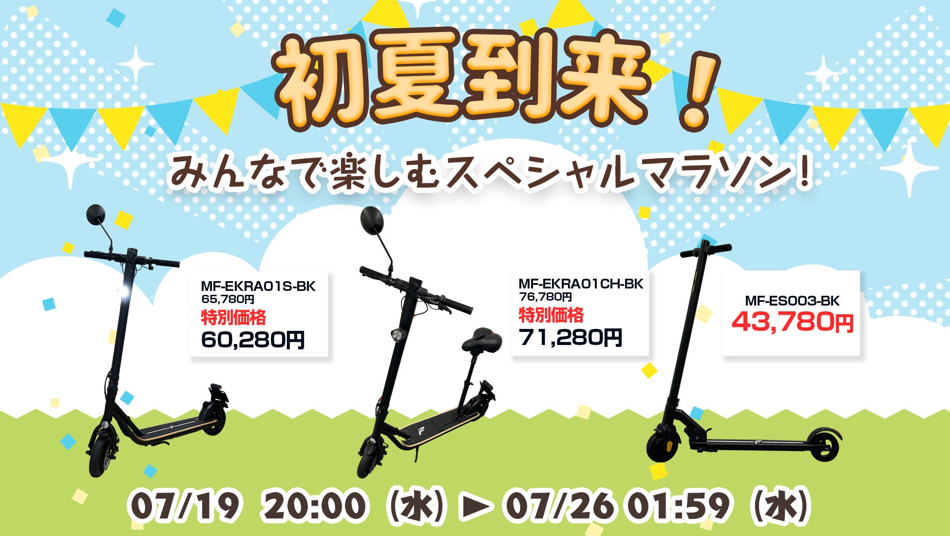 楽天「Show !t」夏のレジャーににおすすめ、公道走行対応電動キックボードの5,000円オフセールを開催。さらに7月19日(水)20時から全商品ポイント10倍、楽天お買い物マラソンに参加。