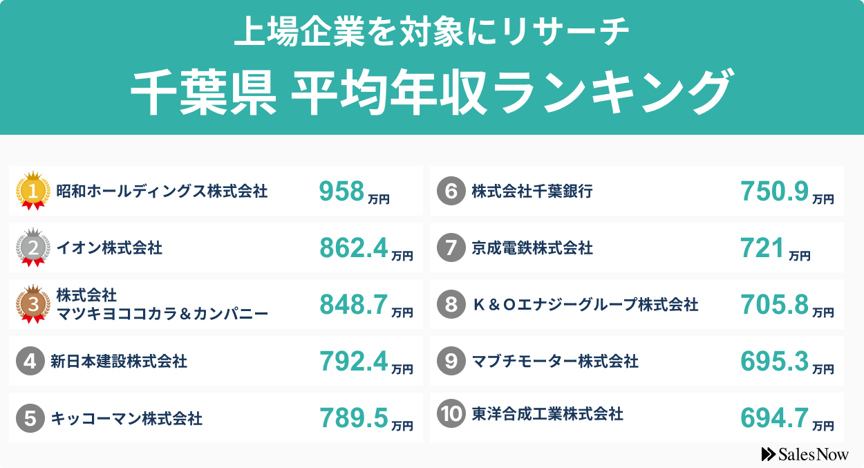 【千葉県】上場企業平均年収ランキングTOP10!/SalesNow DBレポート