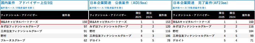 ・1位獲得「日本企業関連 公表案件 (AD19aa) 案件数ベース/不動産案件を除く」